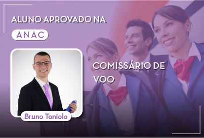 Aos 24 anos, de Campos do Jordão / SP, Bruno foi aprovado na banca da ANAC de Comissário de Voo!