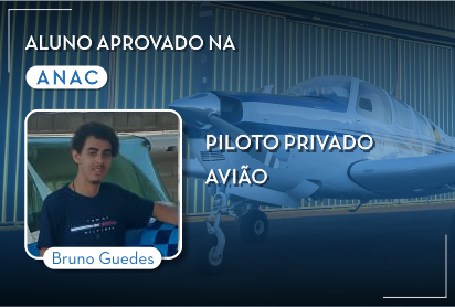 Recentemente o aluno da ATC, Bruno Guedes foi aprovado na banca da ANAC de Piloto Privado de Avião e Helicóptero! Aos