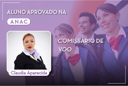 Aos 38 anos, de Carapicuíba / SP, Claudia foi aprovada na banca da ANAC de Comissário de Voo! Iniciou o
