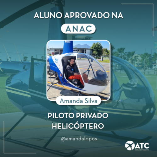 Recentemente a aluna da ATC, Amanda Silva foi aprovada na banca da ANAC de Piloto Privado de Helicóptero!