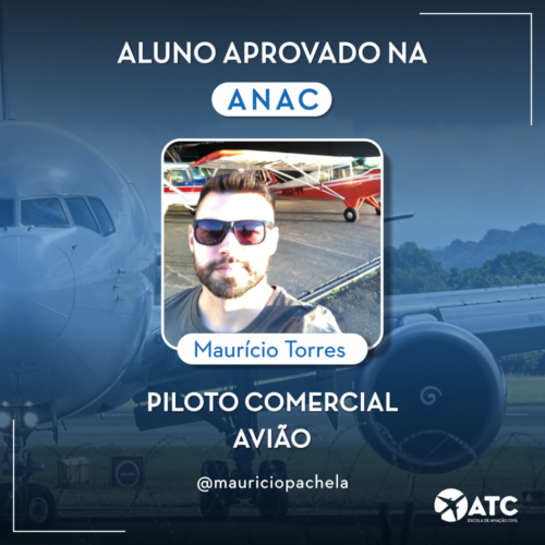 Recentemente o aluno da ATC, Maurício Torres foi aprovado na banca da ANAC de Piloto Comercial de Avião!