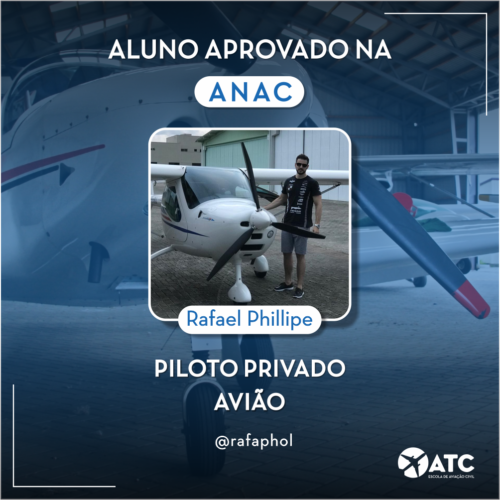 Recentemente o aluno da ATC, Rafael Phillipe foi aprovado na banca da ANAC de Piloto Privado de Avião!