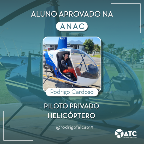 Recentemente o aluno da ATC, Rodrigo foi aprovado na banca da ANAC de Piloto Privado de Avião e Helicóptero!