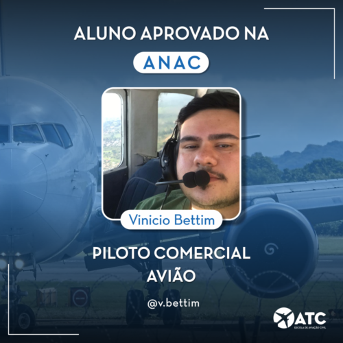 Recentemente o aluno da ATC, Vinicio Bettim foi aprovado na banca da ANAC de Piloto Comercial de Avião!